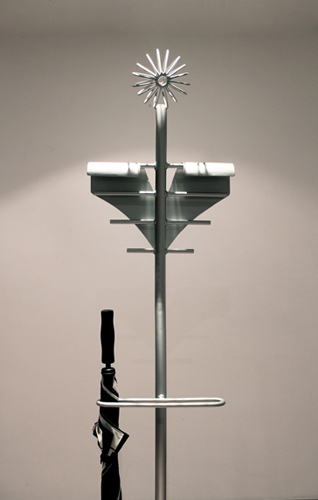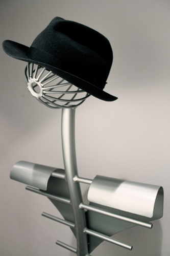 Image Gallery Base Dia 500mm Finish Options - Silver Coat and hat stand. A pleasant sculptural addition to any hallway, entrance or reception area. Perfect for people who want a more intriguing way of hanging their out door clothing. Designed around the idea of bringing sculptural design and human aura to ordinary products. Available to order.